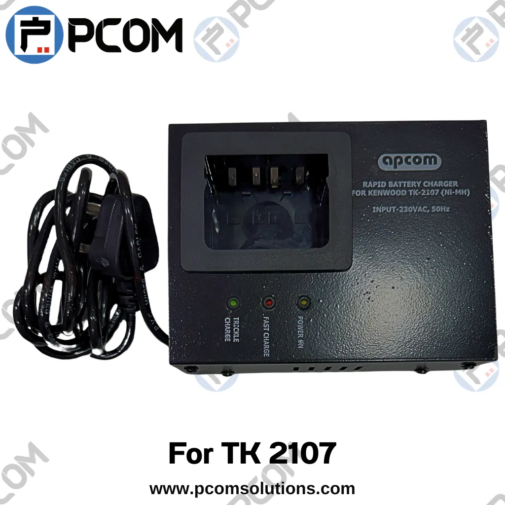 The APCOM charger for Kenwood TK-2107 is a reliable and cost-effective charging solution designed for professional two-way radios. It is typically based on the KSC-24 charging platform, which is widely used across Kenwood analog radios.